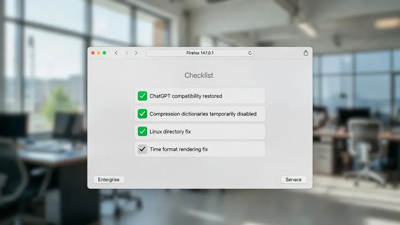 If you manage endpoints, the key takeaway is simple: this is a "get back to stable" release. Even if users are not reporting ChatGPT issues today, applying 147.0.1 reduces the chance of sudden web app regressions linked to content encoding and modern compression negotiation.